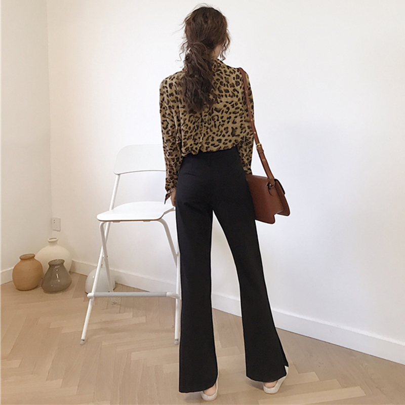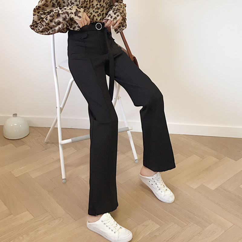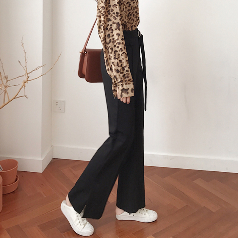 / 高腰顯瘦休閑微喇長褲子女秋冬裝新款韓版chic氣質寬松黑色西裝褲