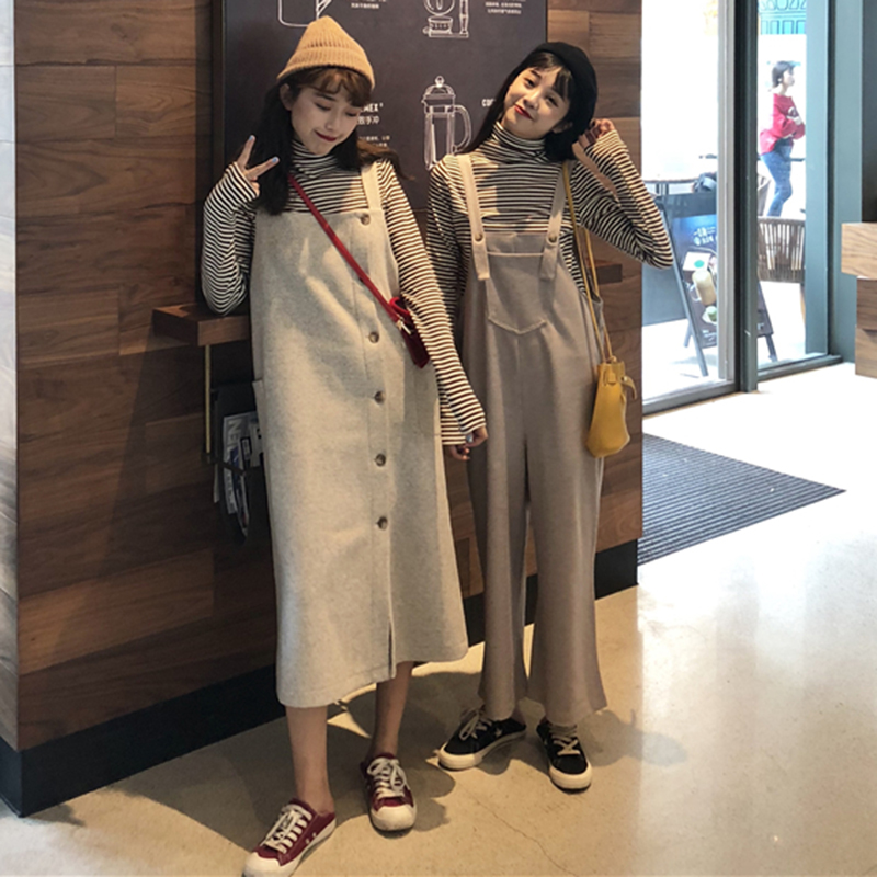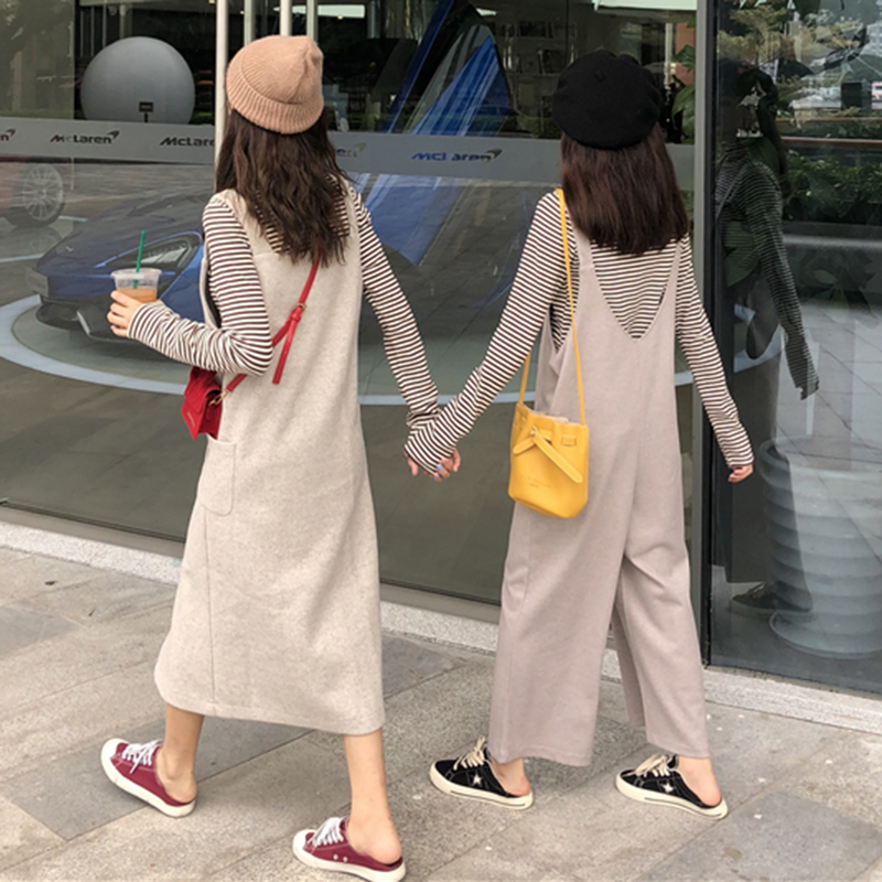 / 簡約純色閨蜜裝寬松背帶連體褲女秋新款韓版學生休閑吊帶連衣裙子
