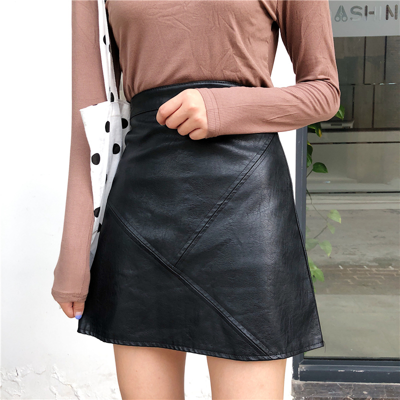 女裝韓版修身顯瘦黑色包臀裙子秋裝新款高腰皮短裙氣質A字半身裙