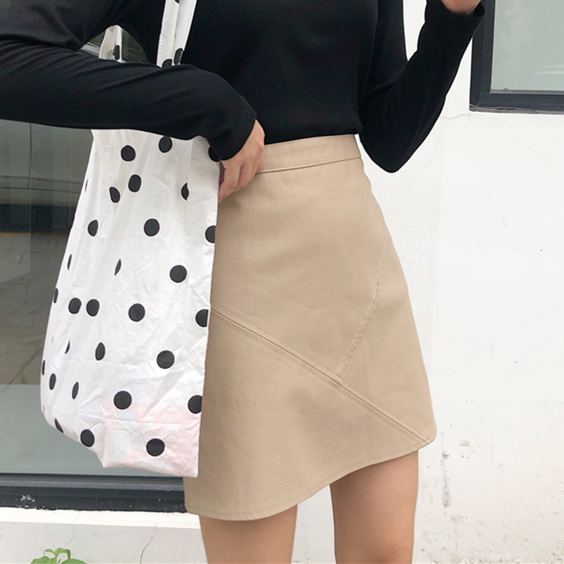 / 女裝韓版修身顯瘦黑色包臀裙子秋裝新款高腰皮短裙氣質A字半身裙
