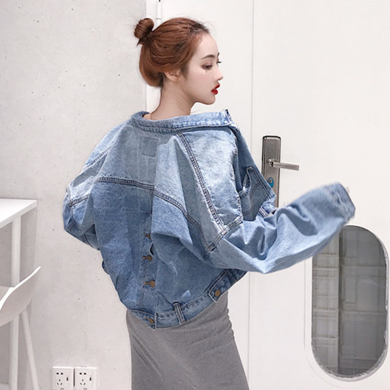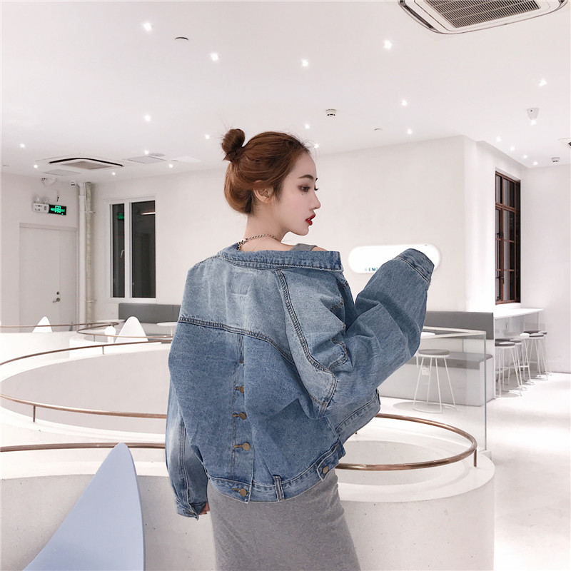 港味時尚復古秋裝女2018新款百搭長袖牛仔外套女修身顯瘦短款夾克