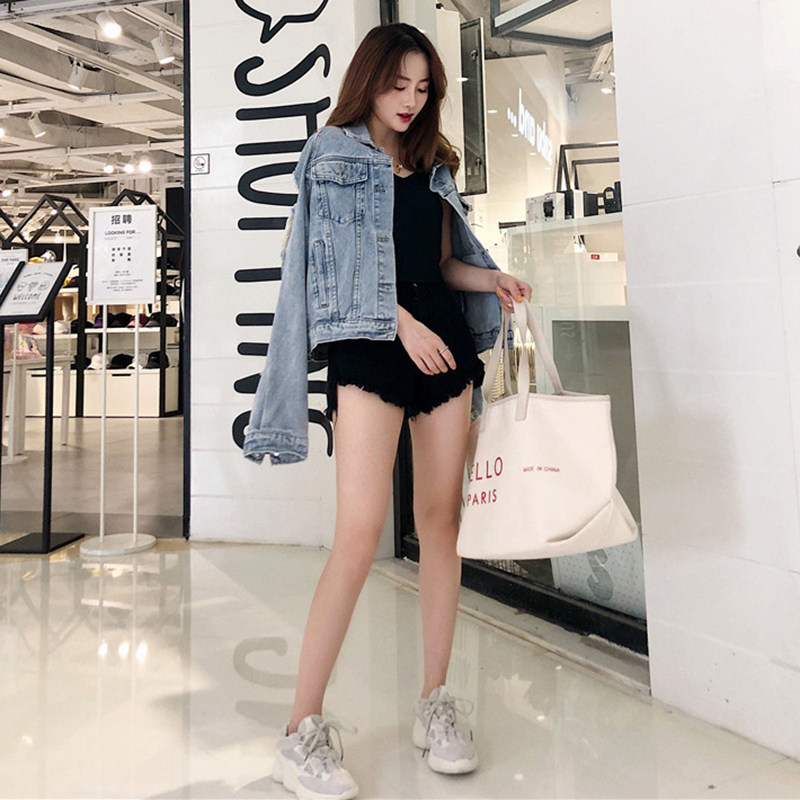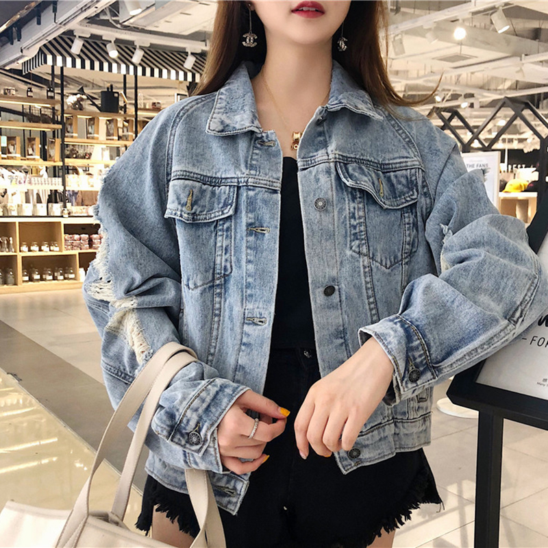 / 秋裝2018新款寬松破洞乞丐牛仔短外套女韓版學生蝙蝠袖夾克上衣潮
