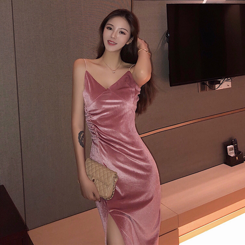 女神套裝秋2018新款氣質絲絨吊帶裙開叉打底連衣裙子寬松粗線毛衣