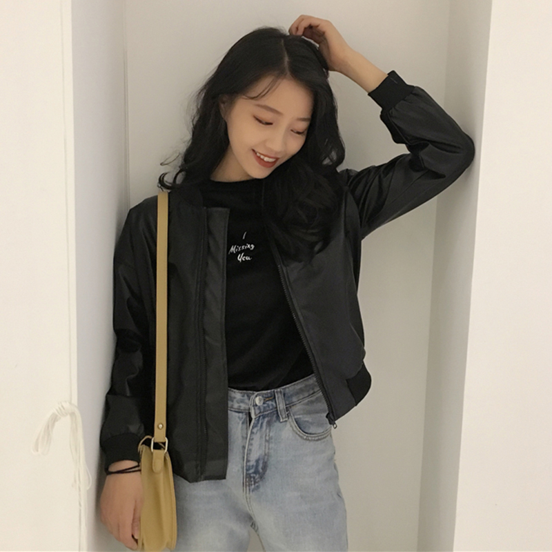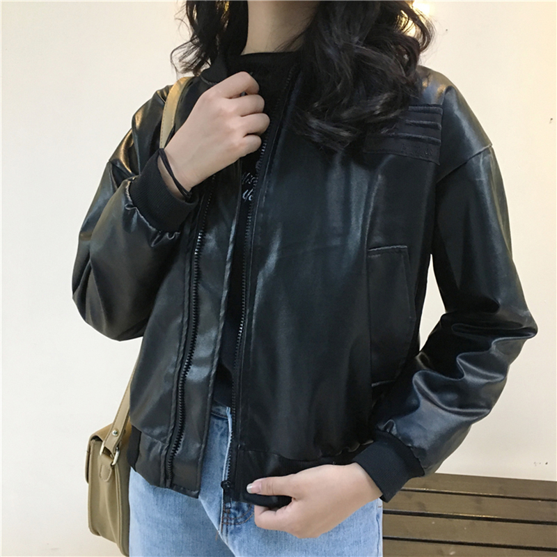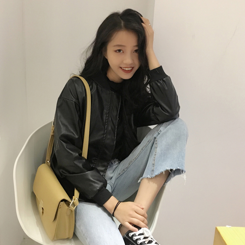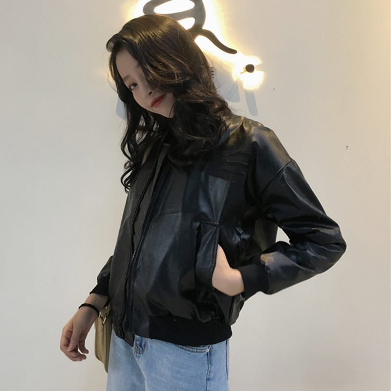 pu皮機車夾克女2018新款秋裝復古時尚帥氣短外套寬松街頭棒球服潮