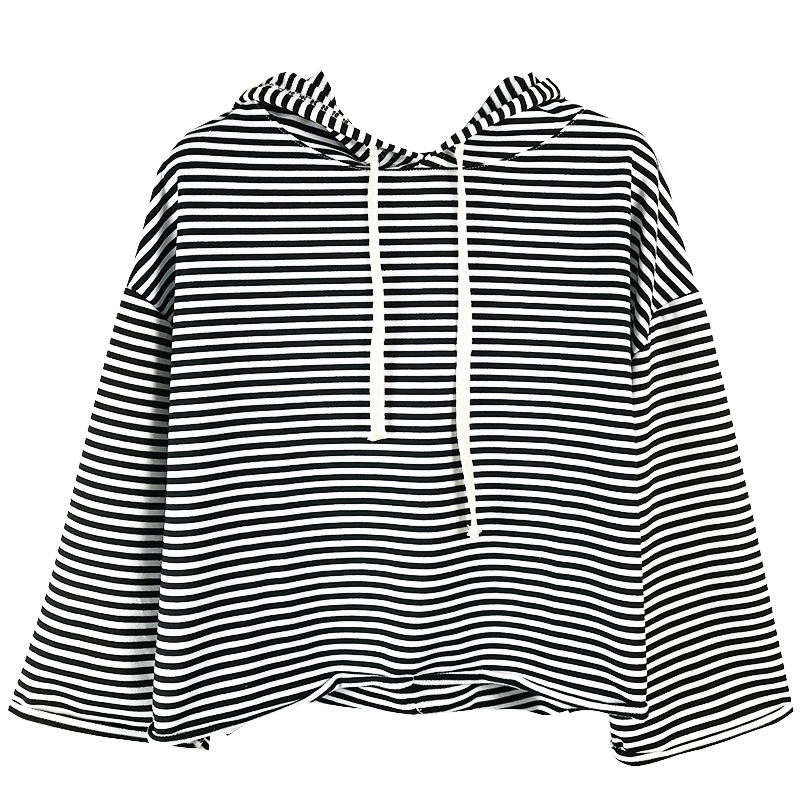 秋裝衛衣女2018新款韓版新款寬松顯瘦慵懶休閑橫條紋連帽長袖上衣