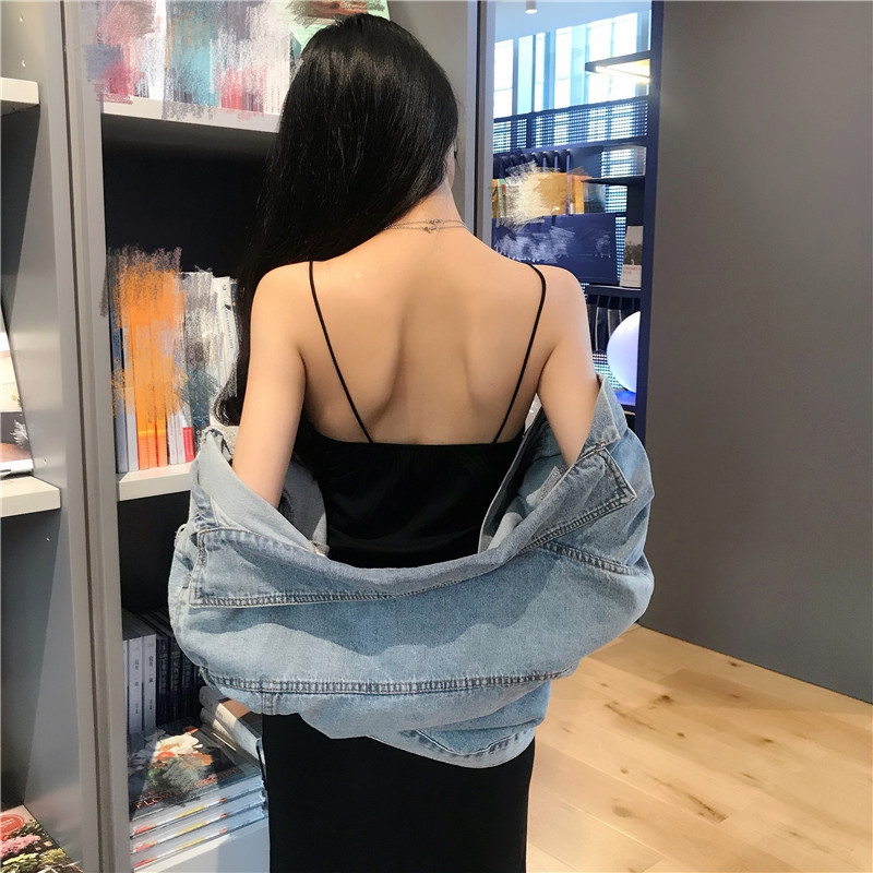/ 溫柔風時尚小黑裙秋裝女2018新款氣質打底吊帶連衣裙開叉中長裙子