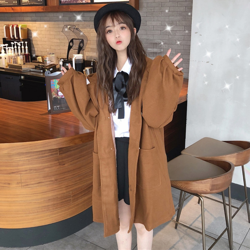 / 2018流行毛呢外套女秋冬裝新款赫本大衣學生連帽風衣休閑長袖開衫