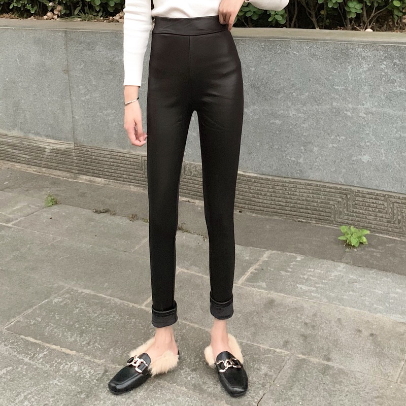 外穿打底緊身小腳褲女秋冬裝2018新款韓版黑色高腰顯瘦pu皮長褲子