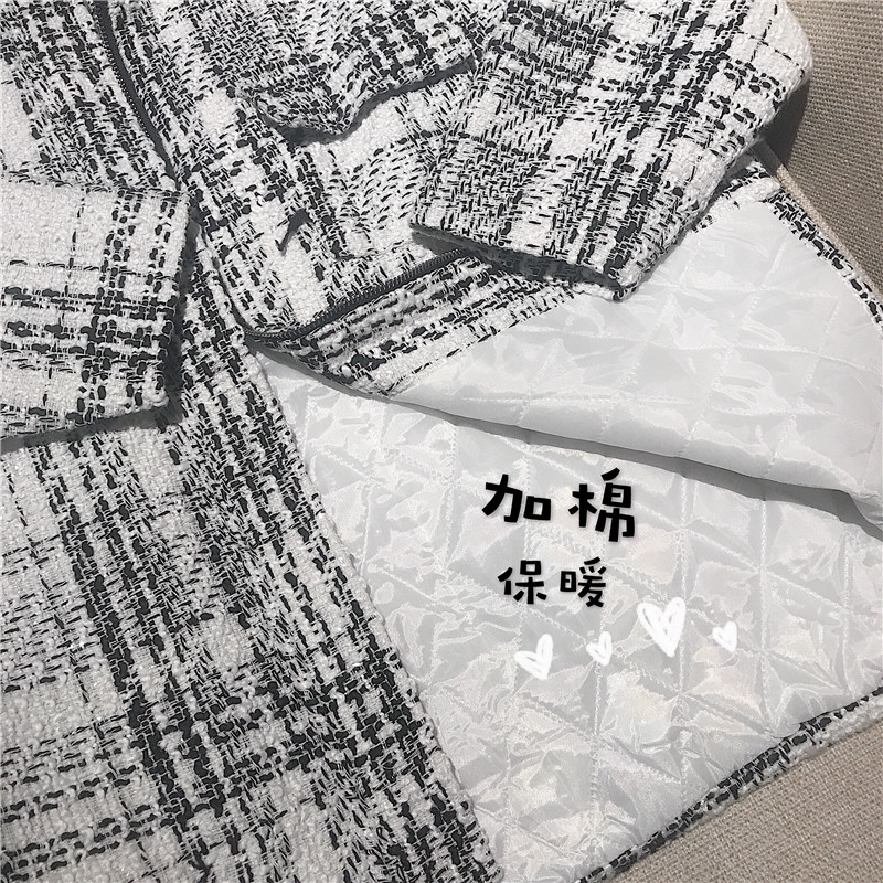 時尚小香風套裝女秋冬2018新款修身打底背心+長袖百搭粗花呢外套
