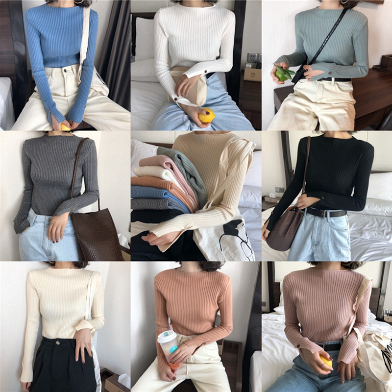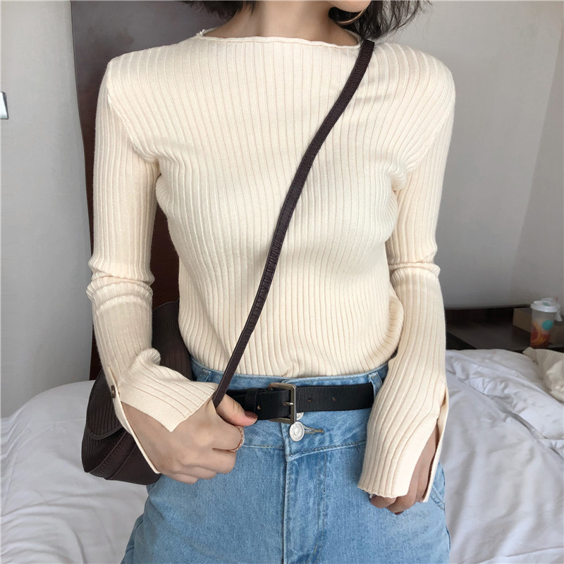 chic袖口開叉套頭針織衫女秋冬裝2018新款韓版氣質修身打底薄毛衣