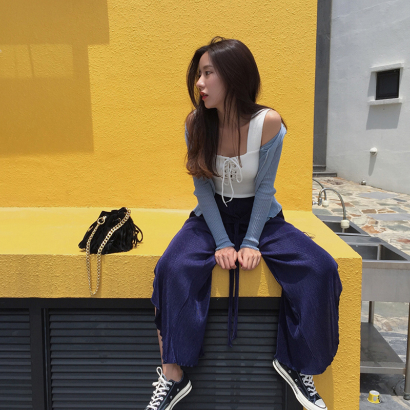 / 春夏新款女裝復古chic風綁帶修身顯瘦短袖粗肩吊帶背心學生上衣女