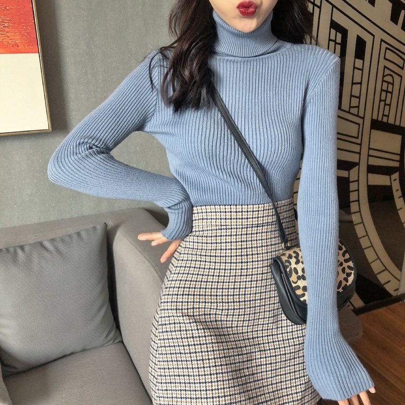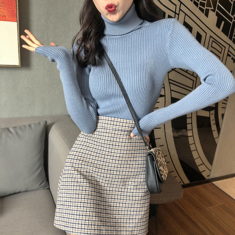 韓版秋冬基礎款慵懶風毛衣女套頭半高領針織打底衫內搭長袖上衣潮