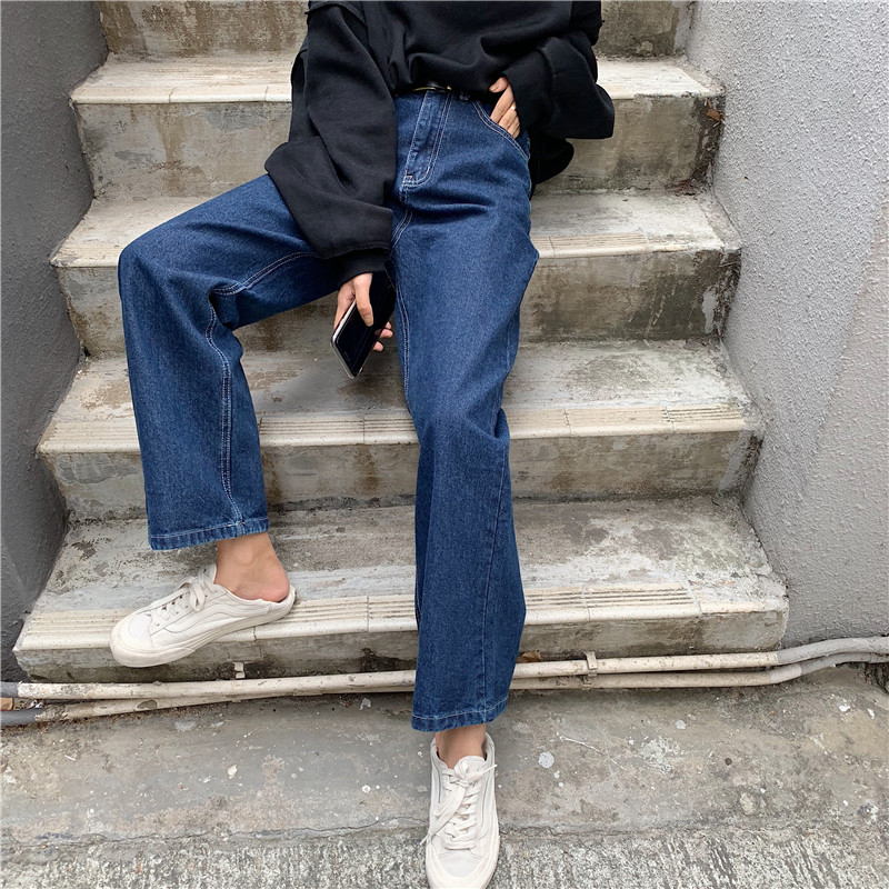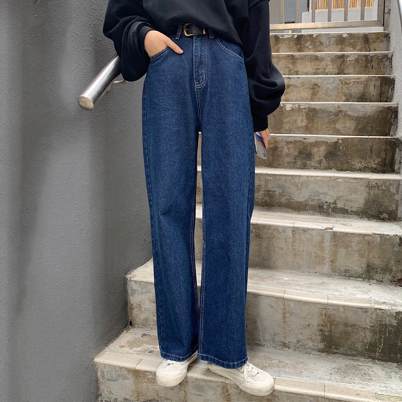 高腰顯瘦復古初戀牛仔長褲女秋冬裝新款學生怪味寬松直筒休閑褲子