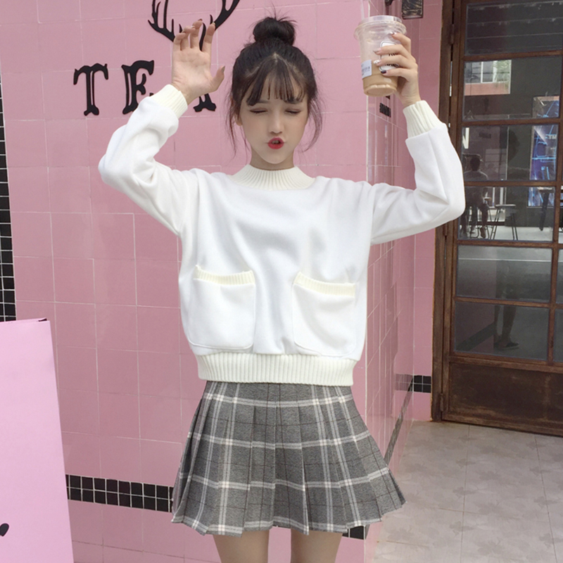 / 秋冬衛衣女2018新款少女寬松雙口袋加厚套頭長袖上衣女裝白色外套