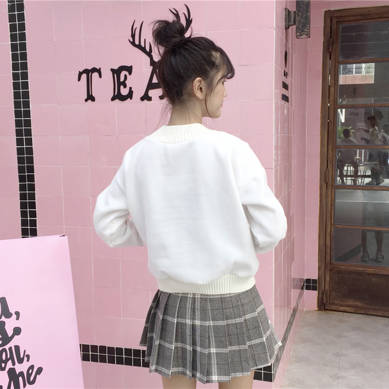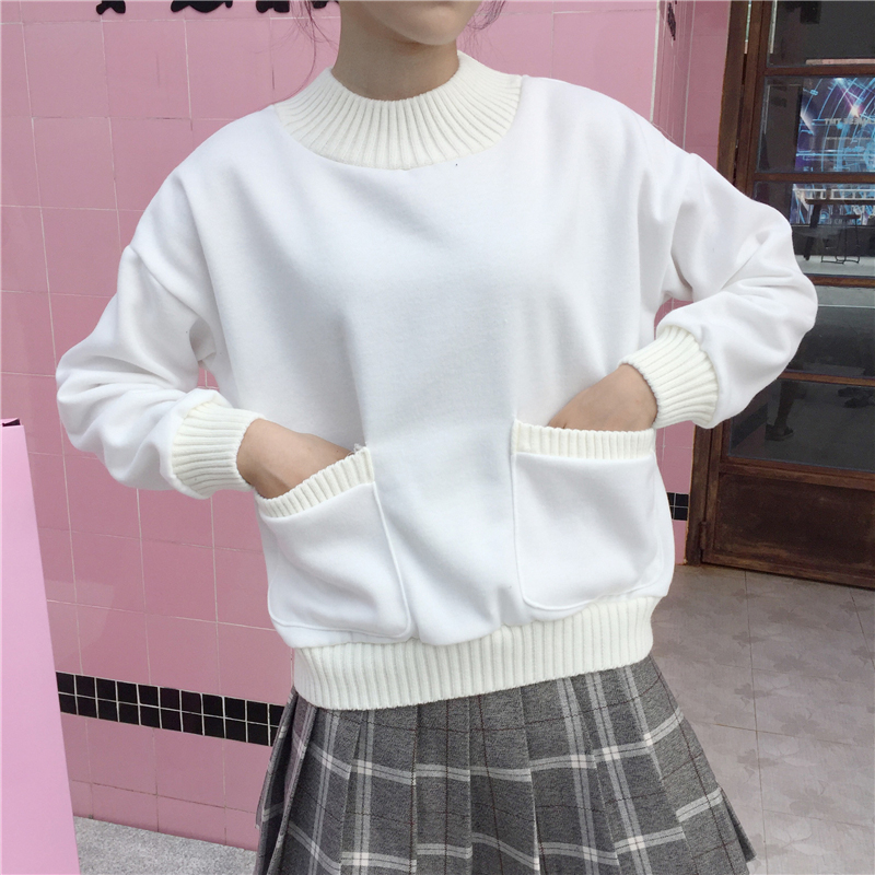 秋冬衛衣女2018新款少女寬松雙口袋加厚套頭長袖上衣女裝白色外套
