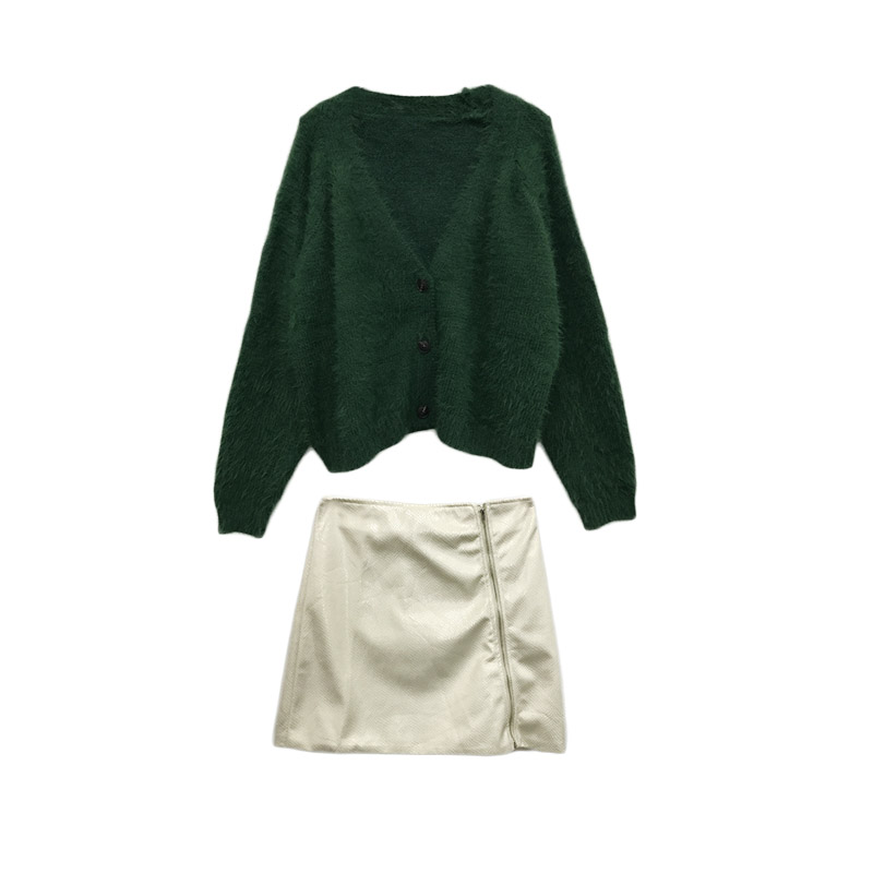 馬海毛網紅毛衣女2018新款針織開衫外套冷淡風針織吊帶連衣裙套裝