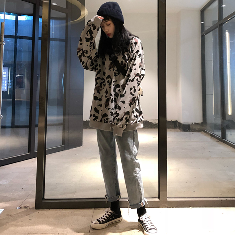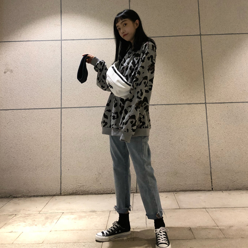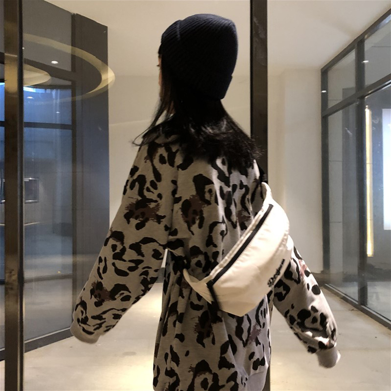 / 個性豹紋長袖衛衣女2018秋裝新款韓版中長款寬松外套學生休閑上衣