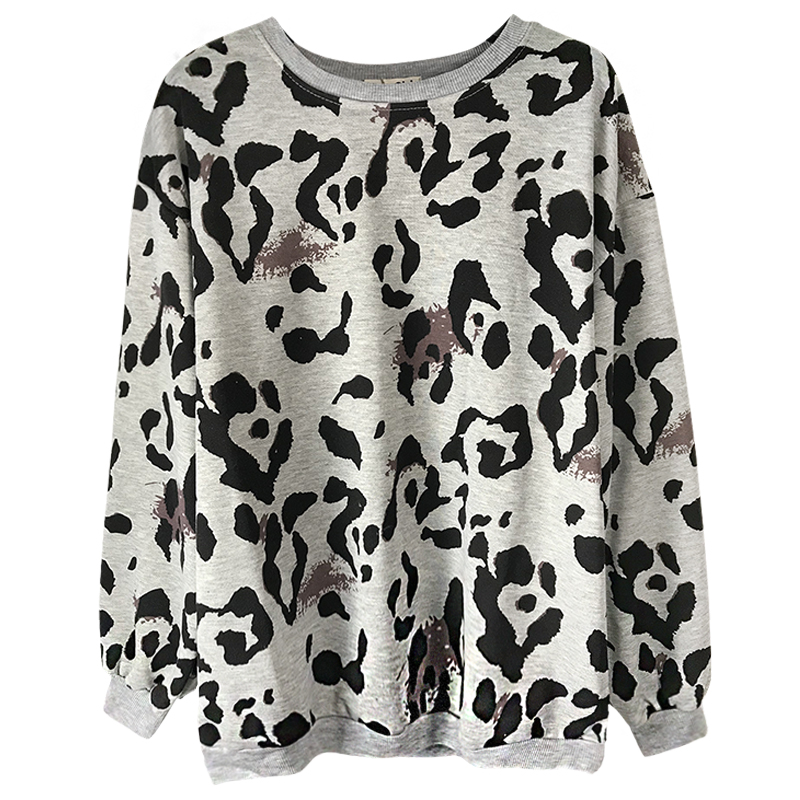 個性豹紋長袖衛衣女2018秋裝新款韓版中長款寬松外套學生休閑上衣