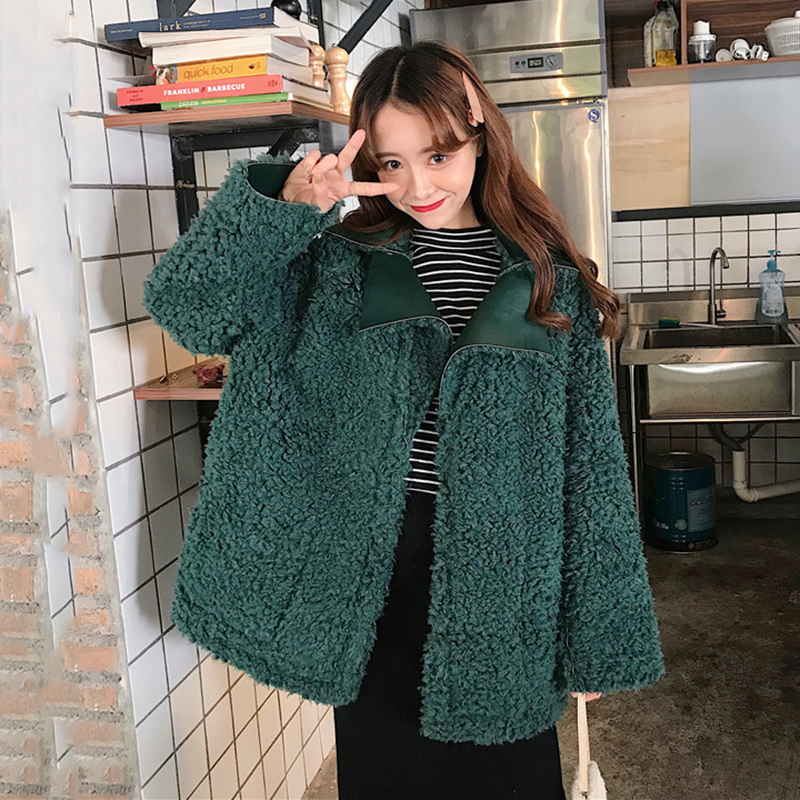 秋冬女裝2018新款韓版中長款寬松翻領仿皮毛一體正反兩穿外套上衣