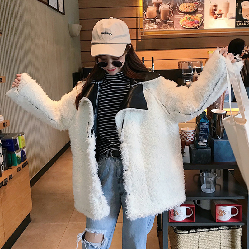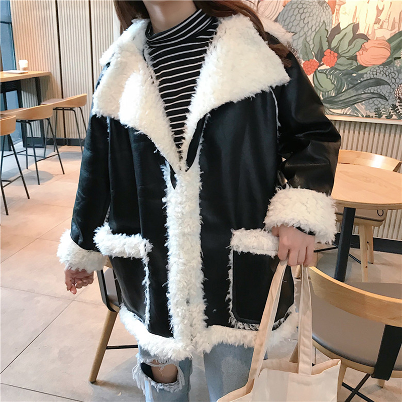 / 秋冬女裝2018新款韓版中長款寬松翻領仿皮毛一體正反兩穿外套上衣