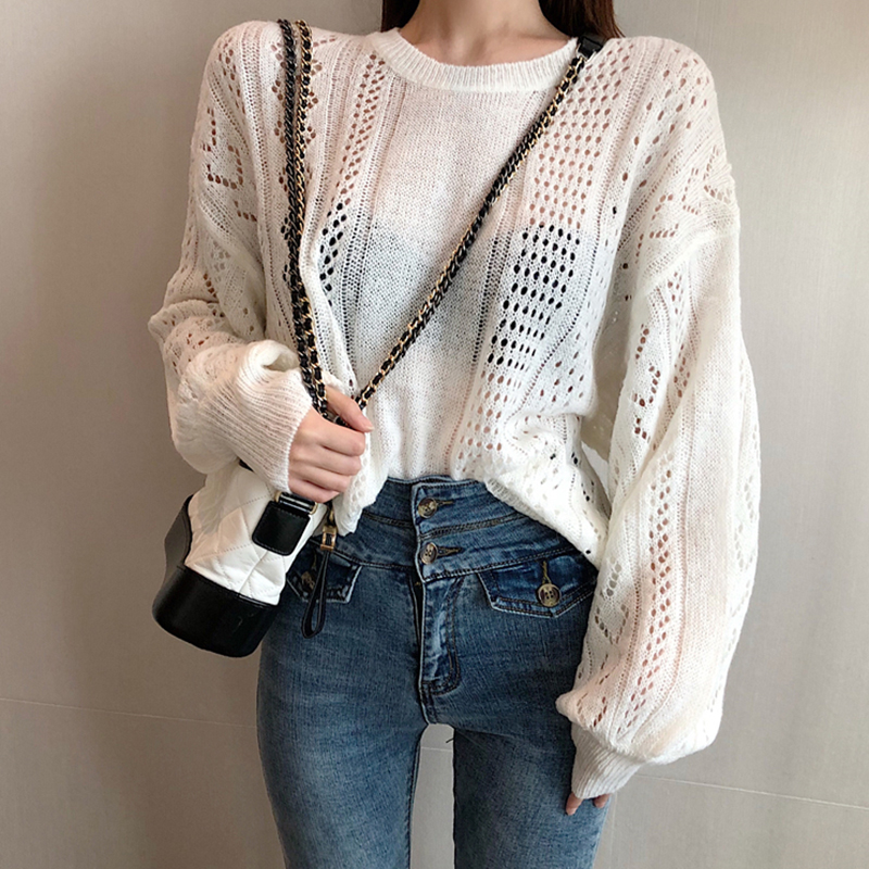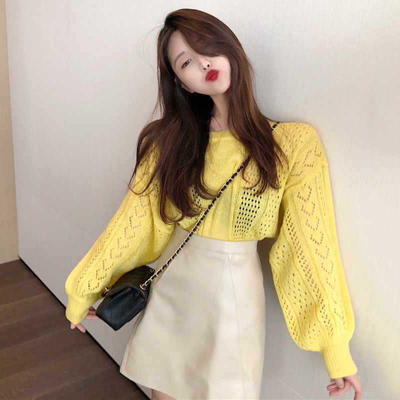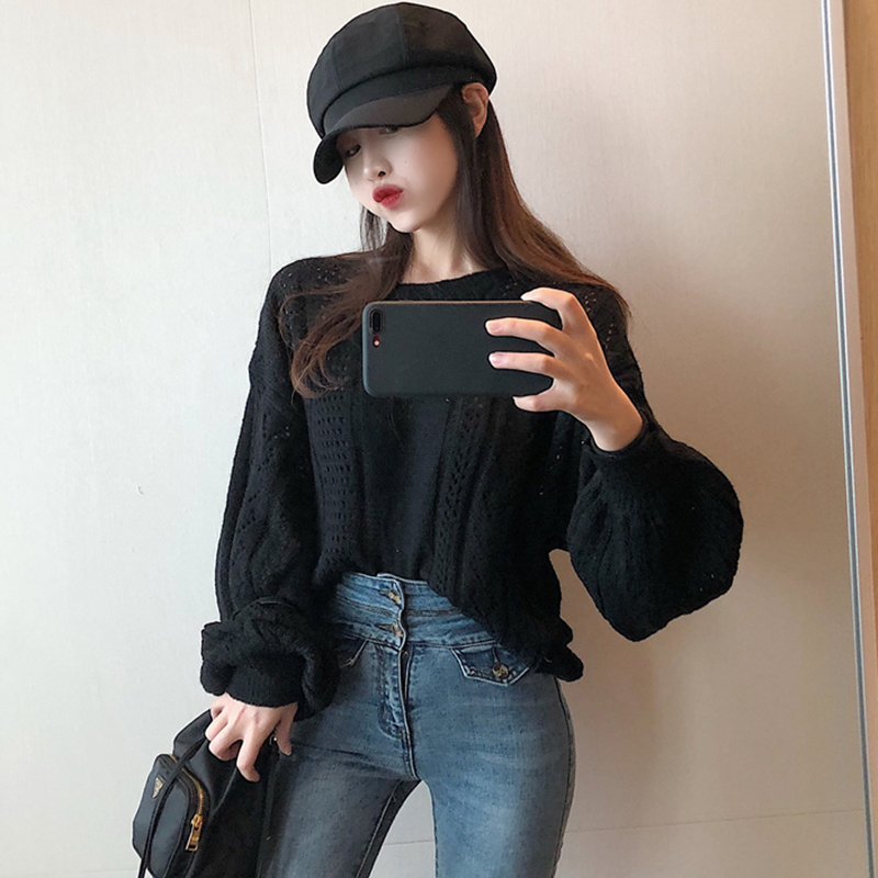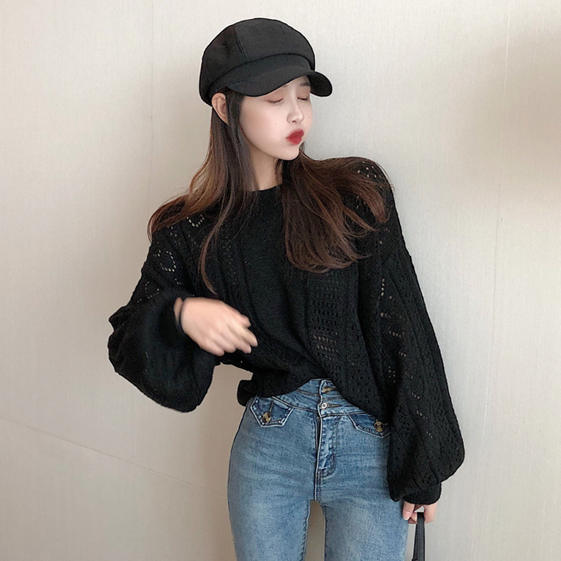 時尚燈籠長袖上衣秋裝女2018新款復古學生休閑針織衫圓領慵懶毛衣