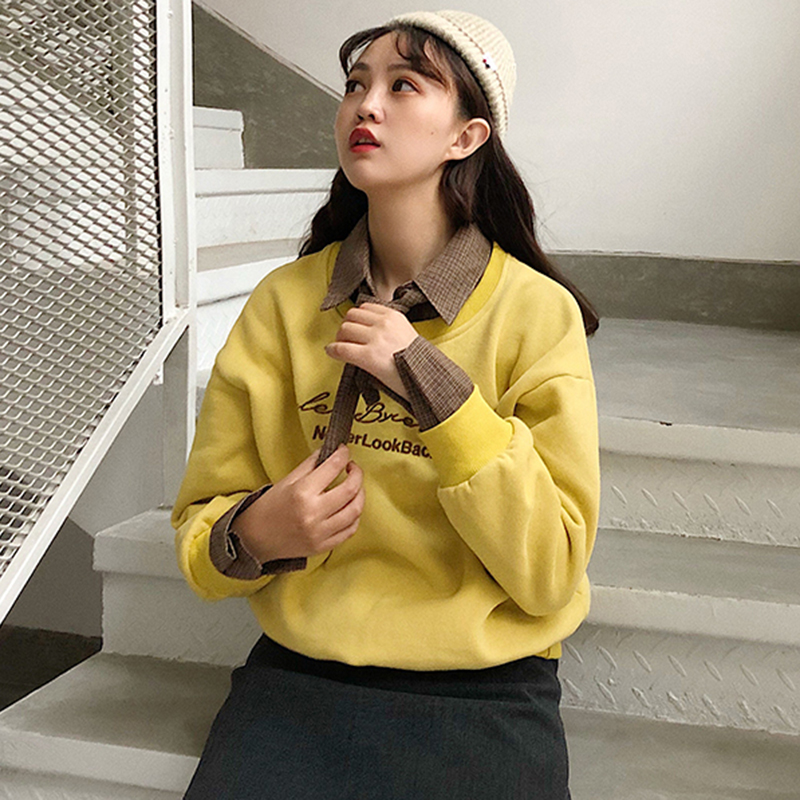 領結拼接衛衣2018新款女秋冬裝港風刺繡加絨外套學生寬松長袖上衣
