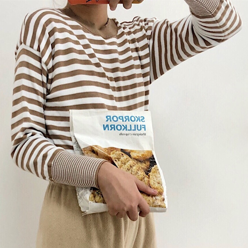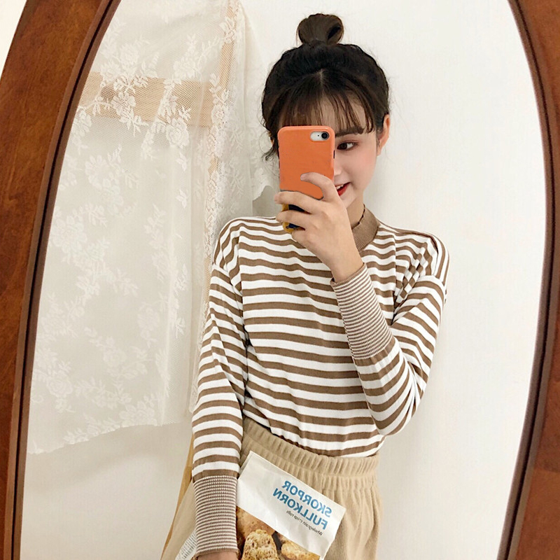 / 氣質條紋修身顯瘦打底針織衫女秋冬裝新款外穿套頭上衣圓領T恤潮