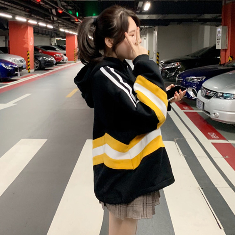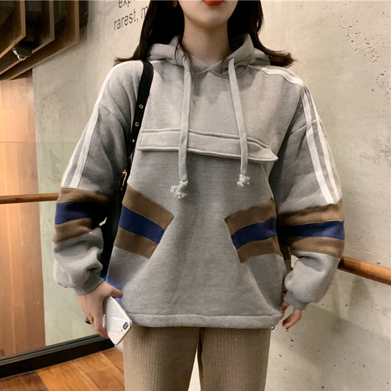寬松連帽衛衣2018新款女秋冬裝港風拼色加絨外套學生時尚長袖上衣