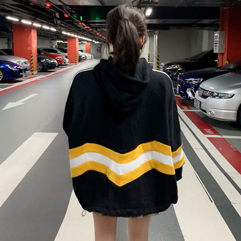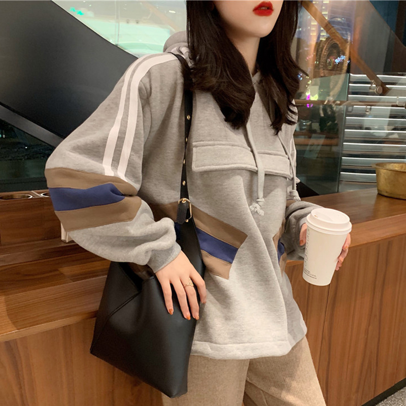 / 寬松連帽衛衣2018新款女秋冬裝港風拼色加絨外套學生時尚長袖上衣