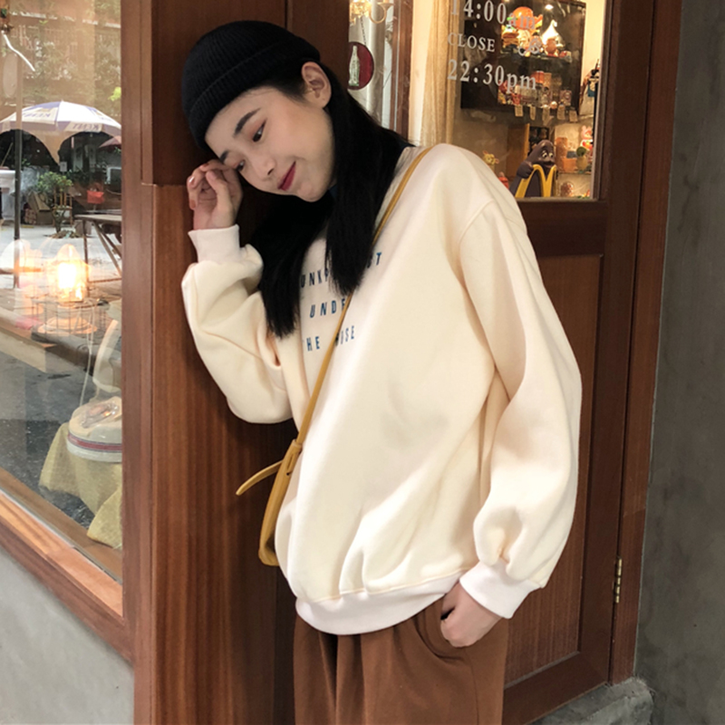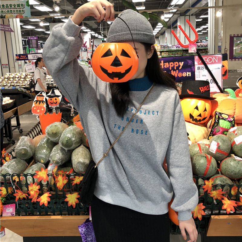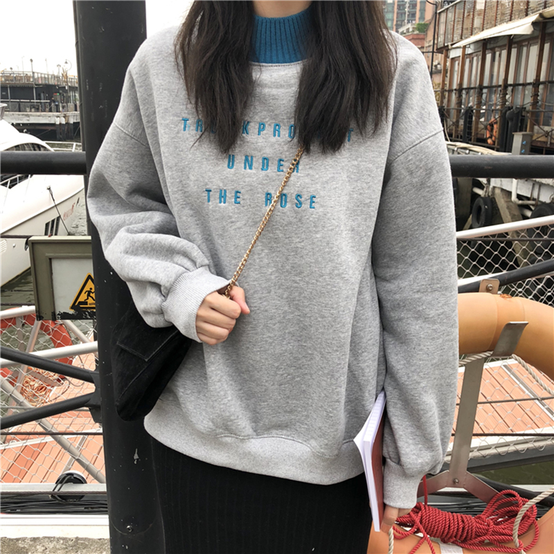 秋冬裝2018新款韓版高領字母繡花套頭衛衣學生寬松休閑外套上衣女