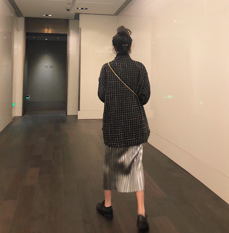 壓褶裙很搶眼哦 版型很修飾身材 穿上整體效果灰長修長
