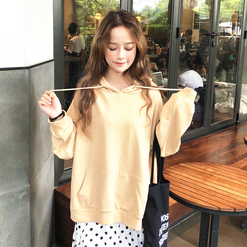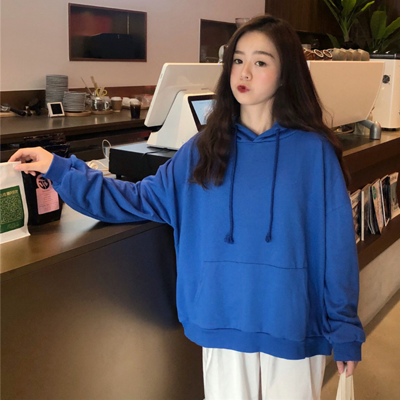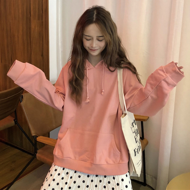純灰色衛衣女秋2018新款長袖藍色韓版慵懶風上衣紫色寬松連帽外套