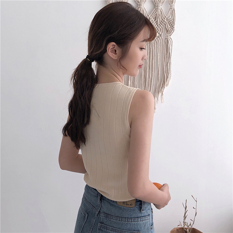 / 夏季新款女裝坑條圓領純色修身顯瘦學生百搭無袖打底針織背心女
