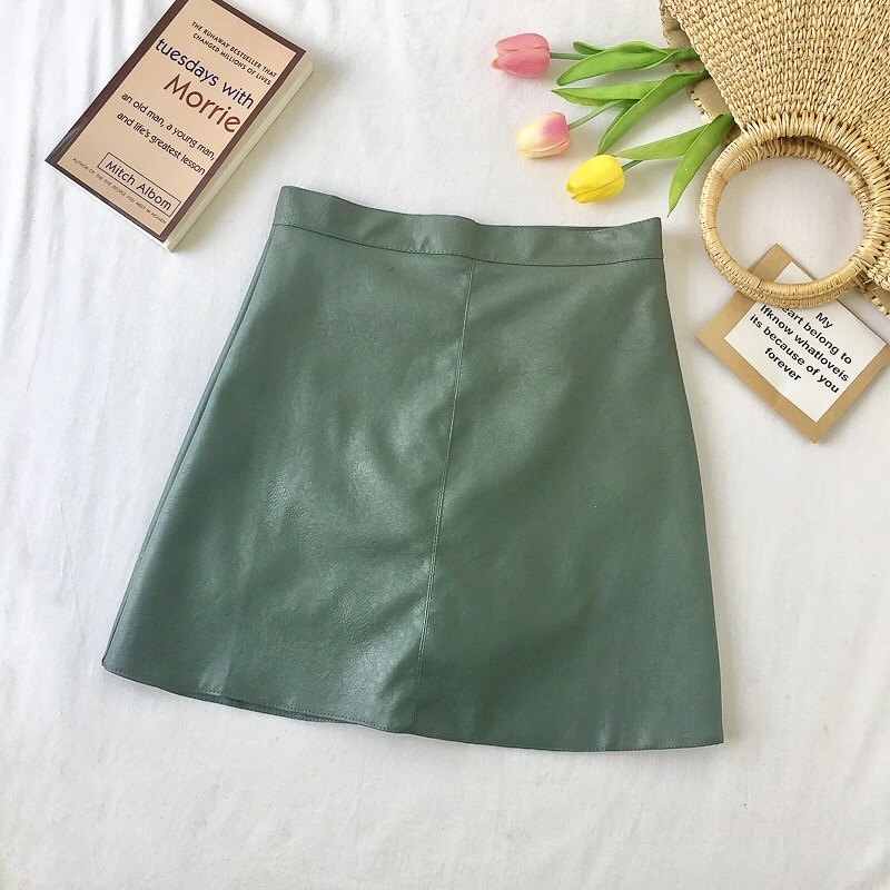 / 高腰PU皮短裙子秋裝女2018新款學生純色A字裙復古黑色包臀半身裙