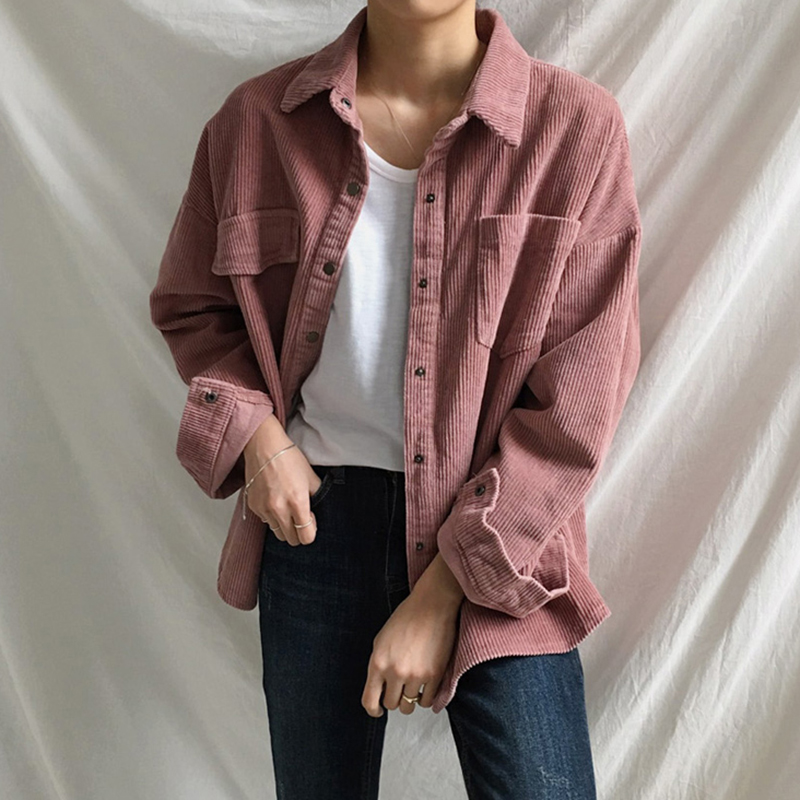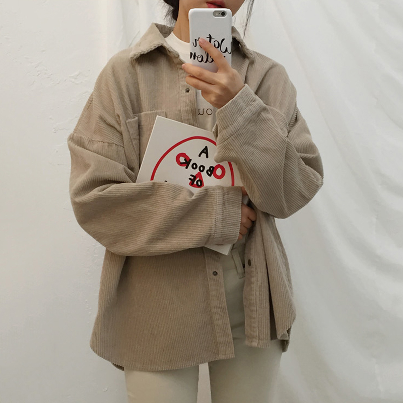 秋裝上衣女2018新款韓版寬松百搭燈芯絨襯衫外套學生長袖襯衣開衫