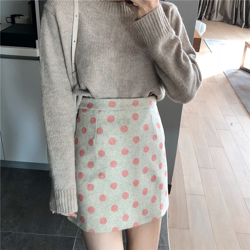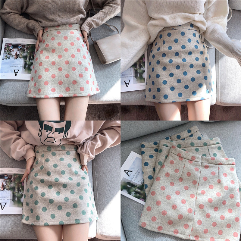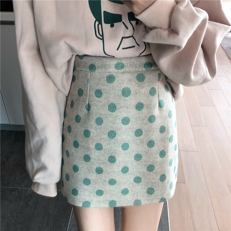 / chic港味裙子女秋冬2018新款時尚復古百搭顯瘦波點毛呢短裙半身裙