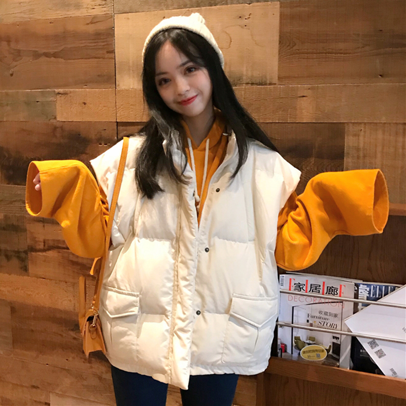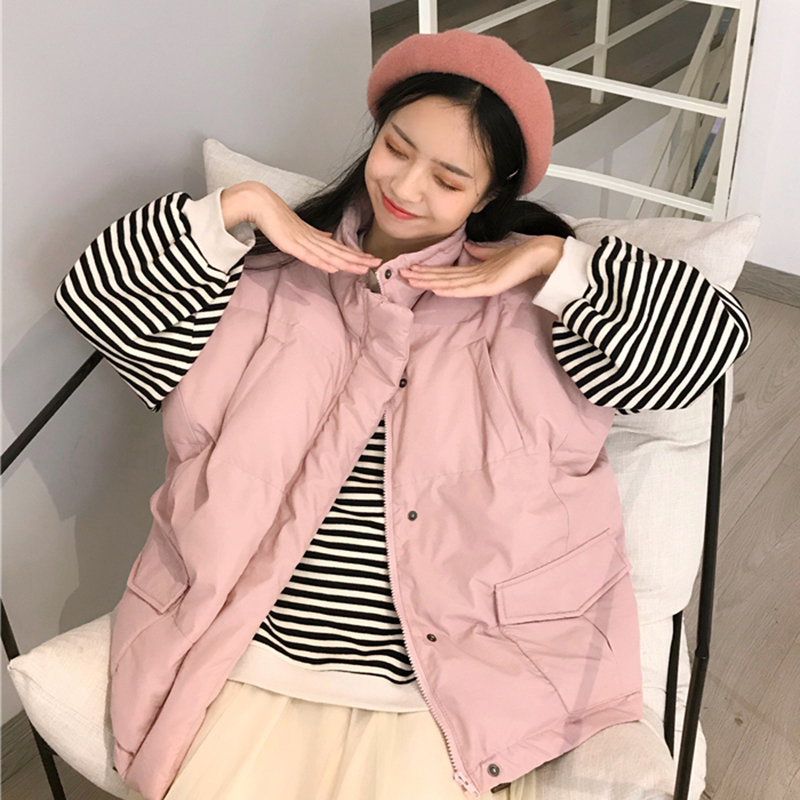 學院風加厚坎肩棉衣馬甲女冬裝2018新款韓版寬松立領面包服外套潮