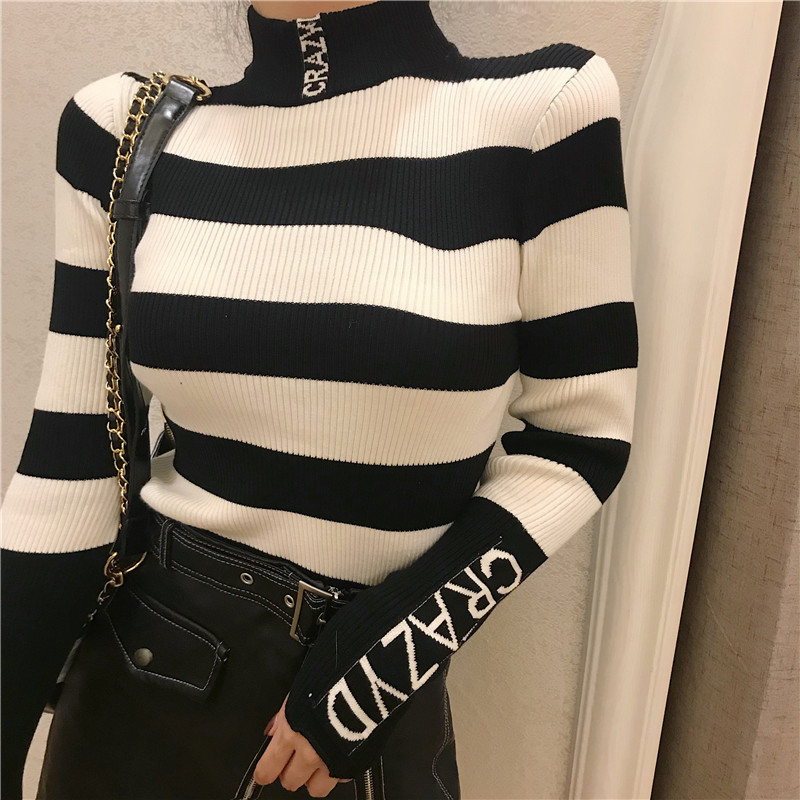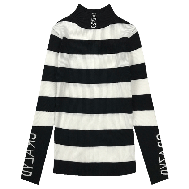 / 氣質高領修身顯瘦針織打底衫秋冬女裝新款復古風條紋長袖T恤上衣