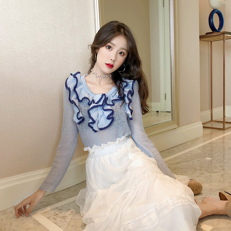 女神套裝秋裝2018新款設計感撞色荷葉邊網紅毛衣+仙女蕾絲蛋糕裙