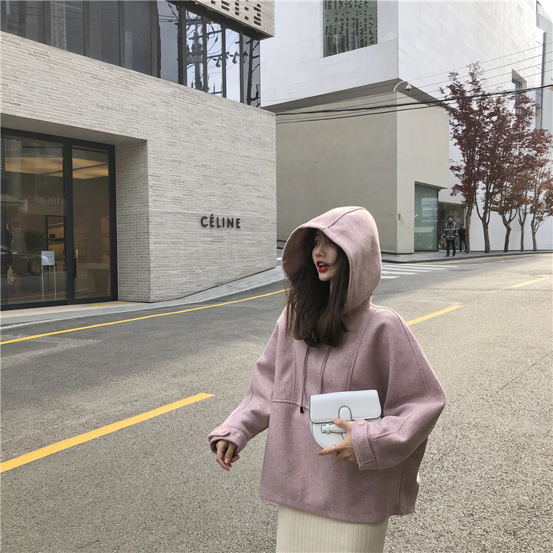 韓版松松垮垮慵懶風百搭寬松套頭連帽呢子衛衣女秋冬2018新款上衣