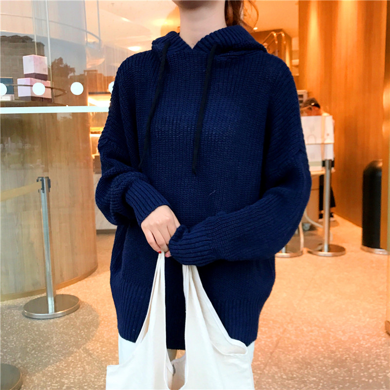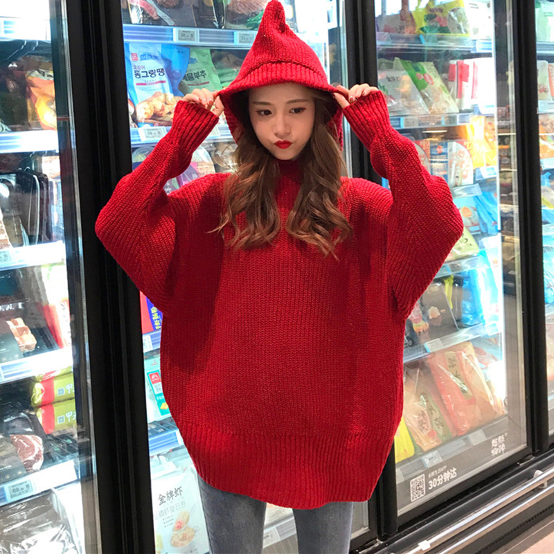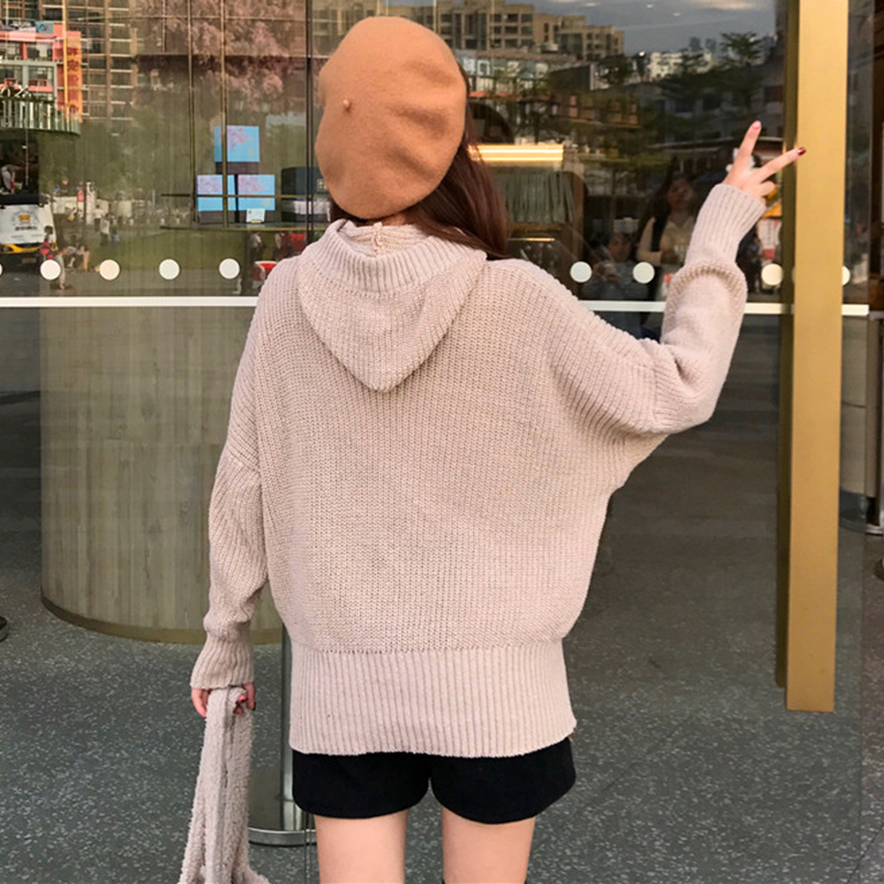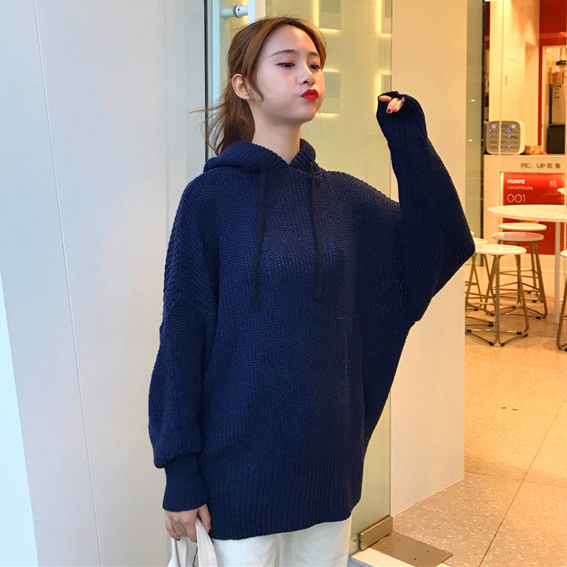 慵懶風抽繩連帽針織衫女秋冬裝2018新款韓版寬松蝙蝠長袖毛衣外套
