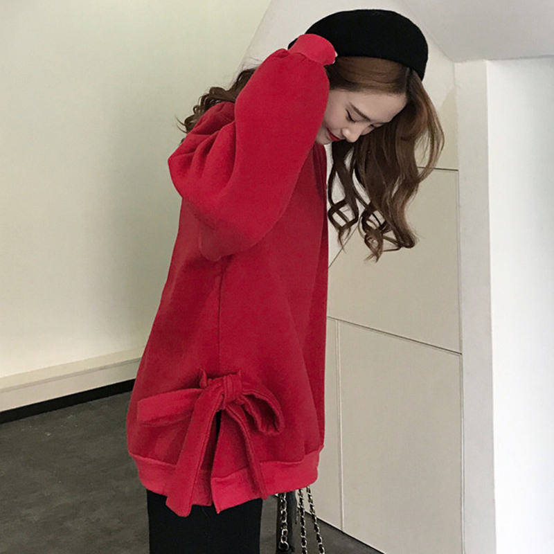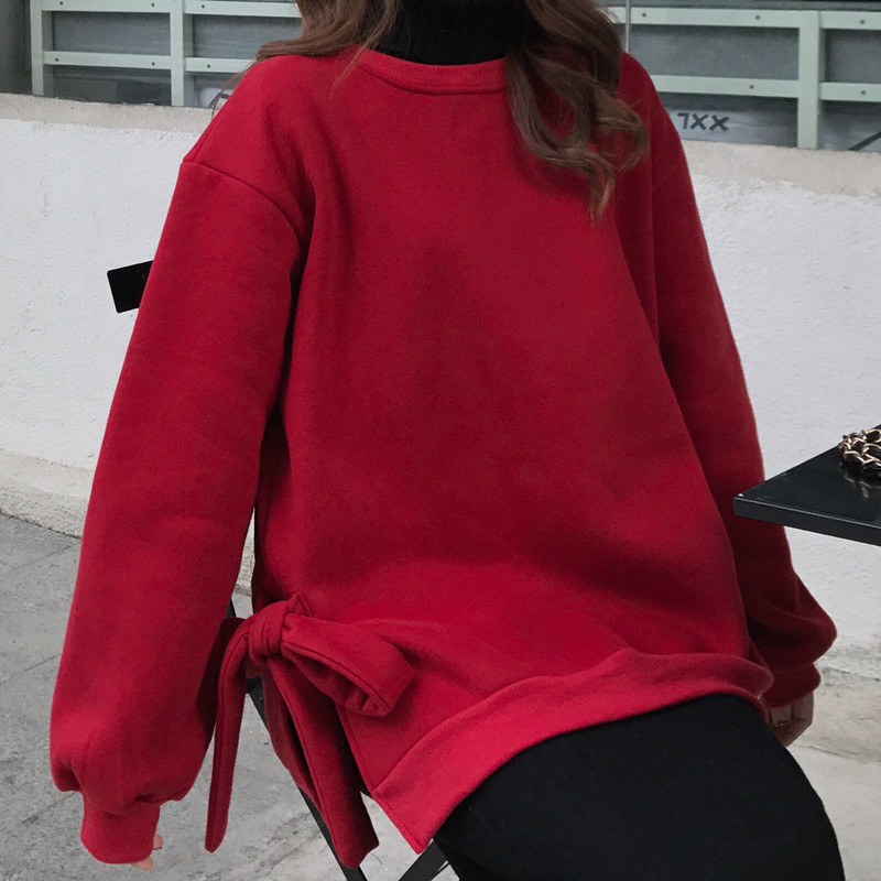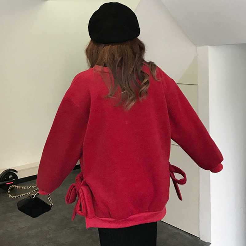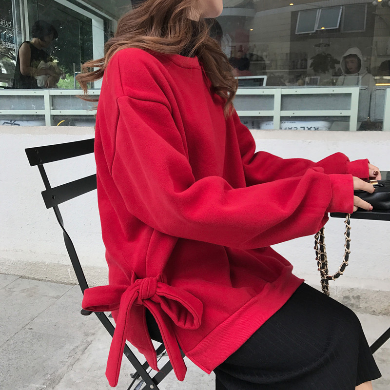 / 個性綁帶開叉紅色衛衣2018新款女秋冬裝港風慵懶寬松外套休閑上衣