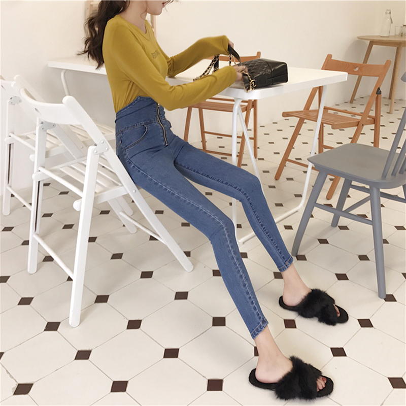 小腳褲女秋冬裝2018新款韓版拉鏈高腰顯瘦鉛筆褲修身彈力牛仔長褲