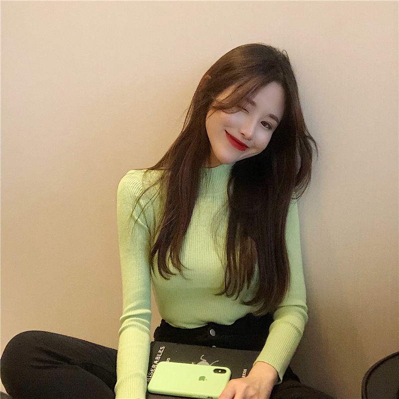 糖果色半高圓領顯瘦上衣韓版學院風百搭長袖修身針織衫女2018新款