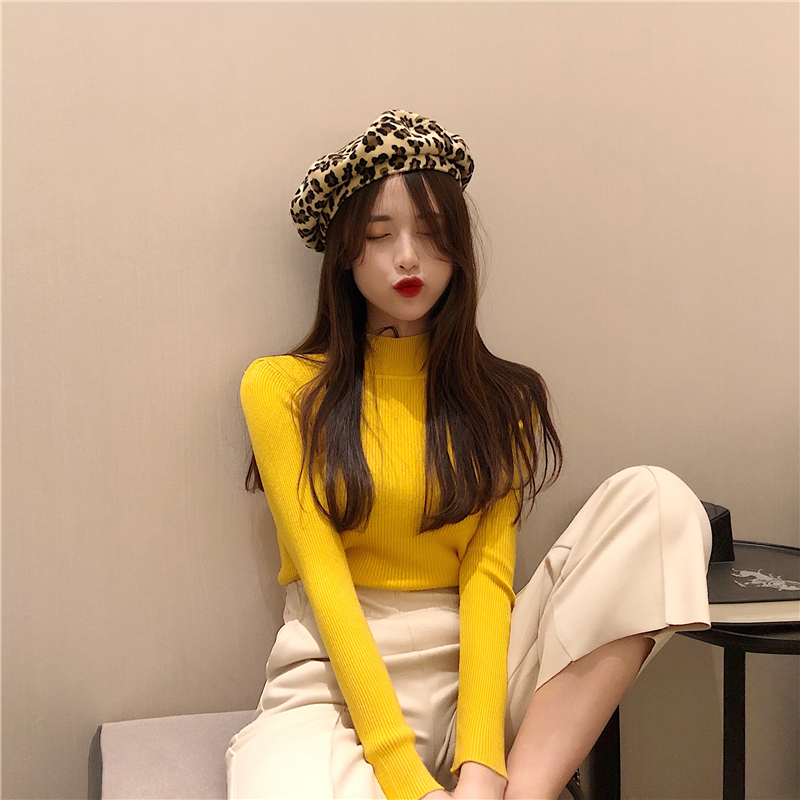/ 糖果色半高圓領顯瘦上衣韓版學院風百搭長袖修身針織衫女2018新款
