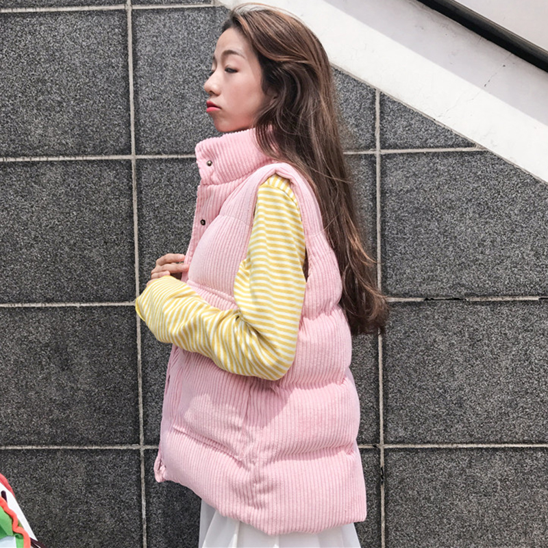/ 慵懶燈芯絨棉服秋裝女2018新款韓版寬松學生純色馬甲上衣簡約外套