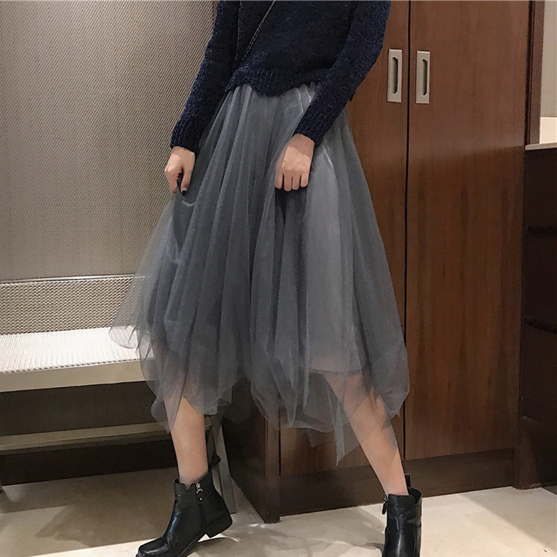 毛衣配裙子兩件套女秋裝新款不規則慵懶針織衫高腰顯瘦網紗半身裙