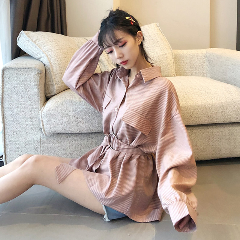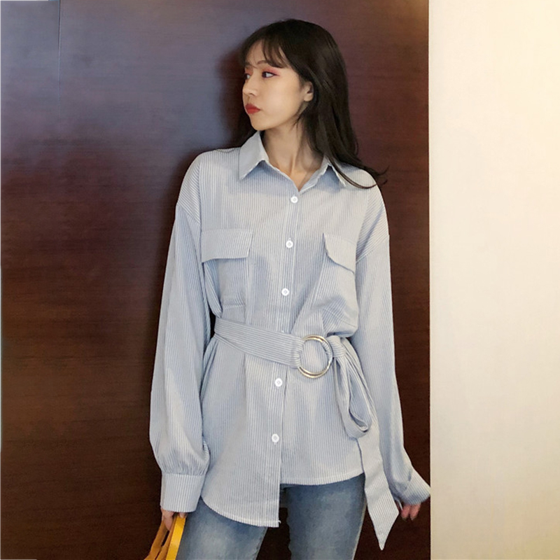秋冬女裝2018新款收腰顯瘦長袖襯衫學生復古上衣寬松休閑時尚外套