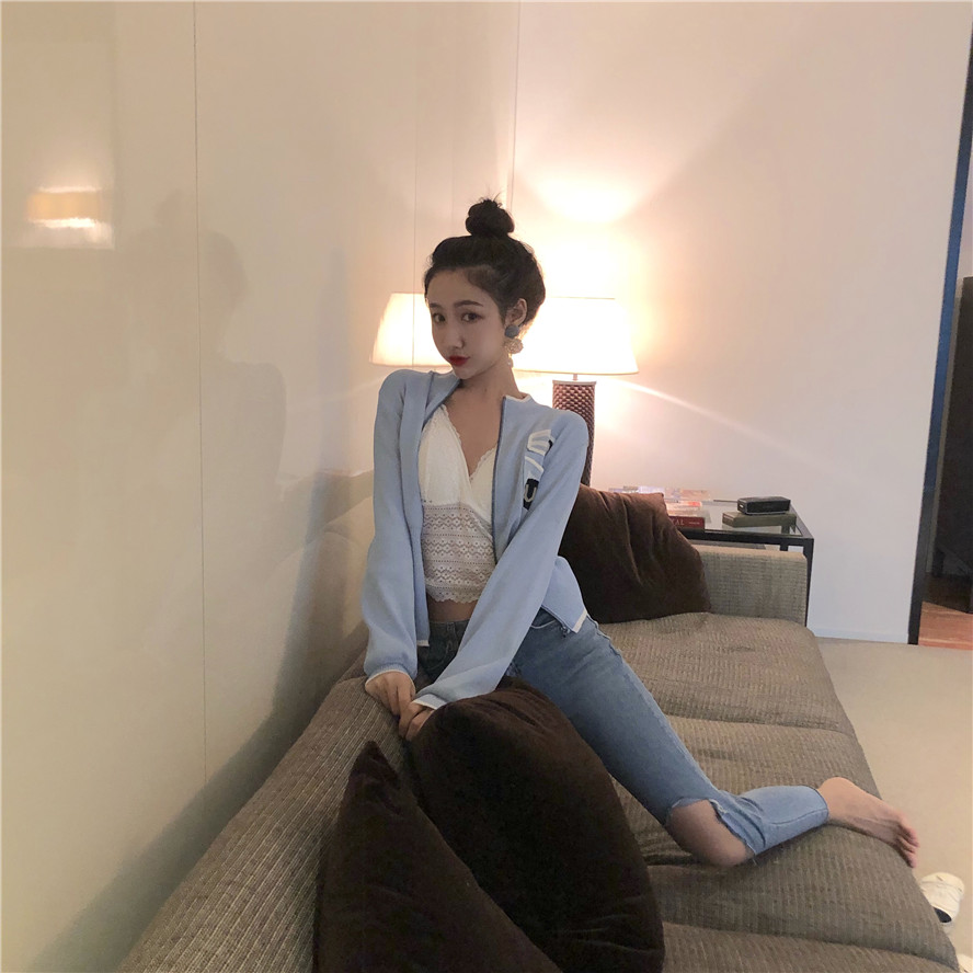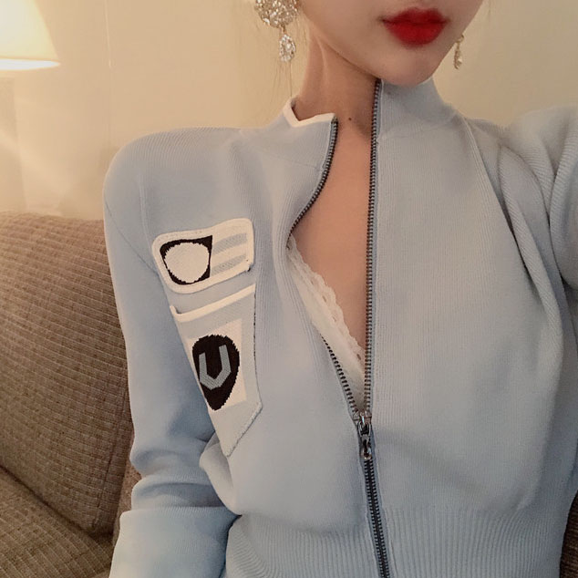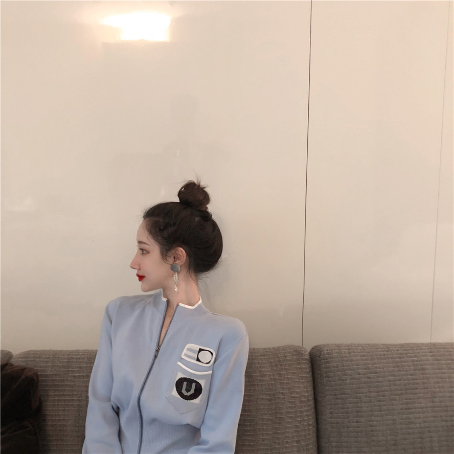 / 小香風馬卡藍針織衫開衫拉鏈毛衣短款外套女春秋2018新款韓版上衣