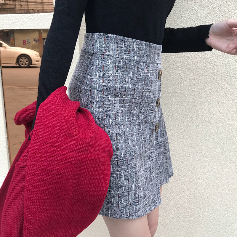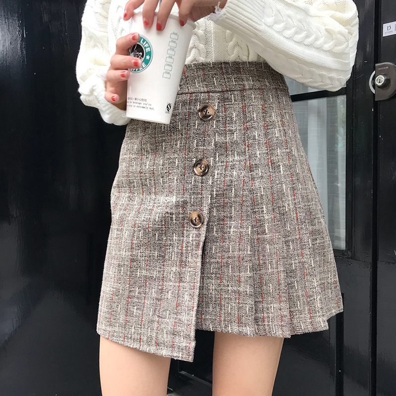 秋冬女裝2018新款學生復古風毛呢半身裙高腰顯瘦不規則A字短裙子